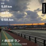 昨日の10㎞、今朝の5㎞がめちゃめちゃ短く感じますた。一昨日の50㎞走効果か?恐るべし。笑